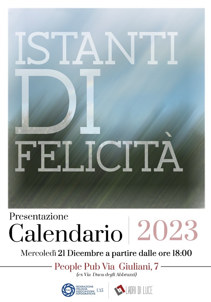 L’appuntamento è quindi per Mercoledì 21 Dicembre 2022 presso il “People”, via Giuliani (ex Via Duca degli Abbruzzi), 7, dalle 18:00 alle 21:00. Scopriremo insieme le foto scelte e sarà anche una occasione per incontrarci e brindare insieme con un buon prosecco all’anno che verrà.